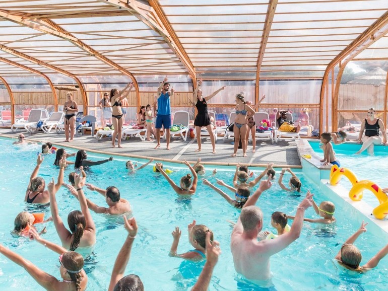 Genießen Sie mit der ganzen Familie die Badefreuden im teilweise überdachten, beheizten Erlebnisbad des Yelloh! Village La Pomme de Pin. Planschbecken mit Wasserspielen, Aquasplash, Rutschen, Sprudelbäder: Bei Ihrem Campingurlaub können Sie nach Herzenslust lachen und spritzen!